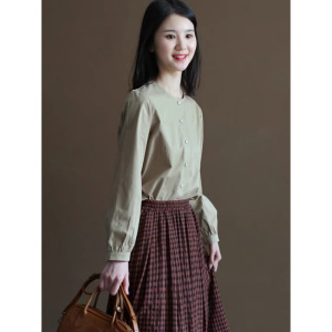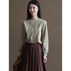 现货 2025秋季复古纯棉文艺长袖打底衬衣女森