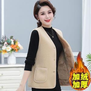 羊羔毛一体马甲女新款秋冬百搭时尚女士加绒加厚外穿背心马夹外套