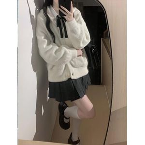 2025新款日系学院风穿搭休闲宽松仿水貂毛开衫外套jk潮流裙冰丝