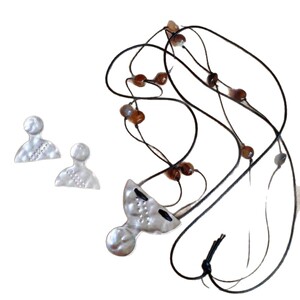 中式复古编绳半圆勺子长款项链耳环套装小众高级感气质百搭配饰女