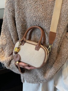 时尚简约单肩帆布手提包高级感百搭小方包宽肩带枕头包跨境外贸