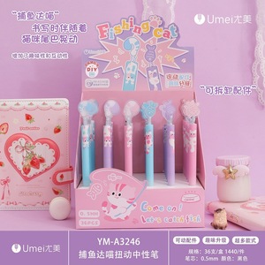 尤美3246捕鱼达喵扭动中性笔创意可爱猫尾巴贴片学生书写速干水笔