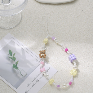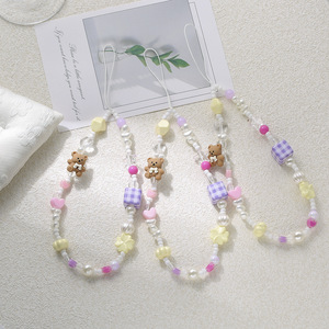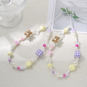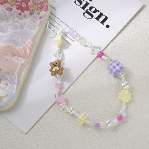 可爱卡通小熊手机挂绳diy手提链串珠挂饰通用手机壳少女心ccd相机