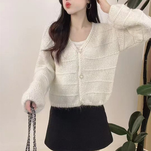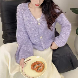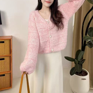 软糯纯色灯笼袖V领针织衫外套女2025秋冬款韩系慵懒风针织衫上衣