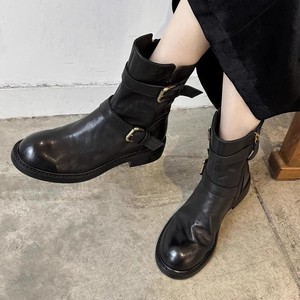 羊皮版~英伦风皮带扣真皮马丁靴女新款复古圆头粗跟百搭显瘦短靴