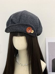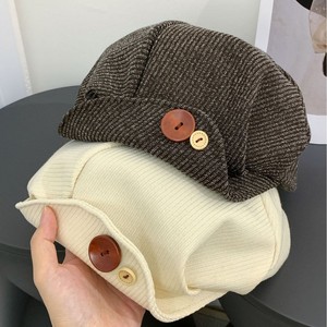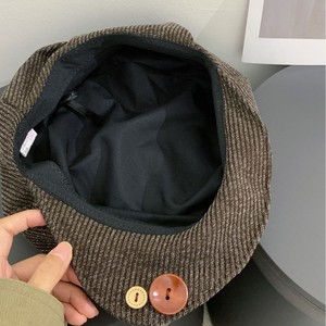 灯芯绒纽扣翻檐贝雷帽女春秋季美拉德大头围八角帽显脸小画家帽子