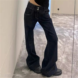 韩版复古垂感牛仔裤微喇裤女2025秋季新款高腰显瘦拖地裤长裤