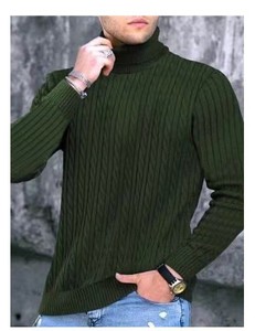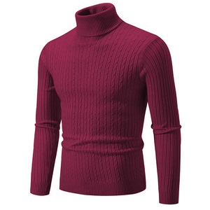 跨境欧美2025秋冬男士纯色高领毛衣男时尚扭麻花套头打底针织衫男