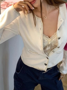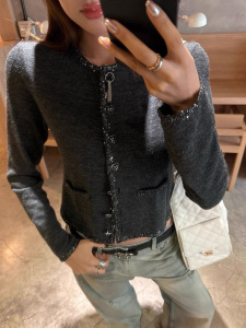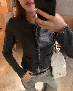 千金 法式温柔气质小香设计感亮片织带针织毛衣开衫