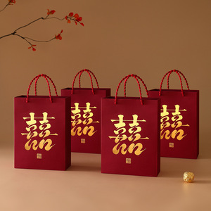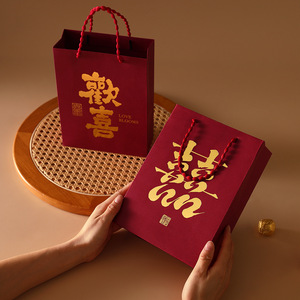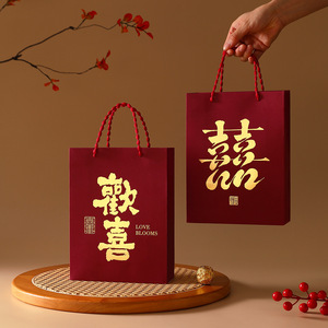 结婚手提袋礼品袋婚礼装伴手礼物2025喜糖袋纸袋红色婚庆用品大全
