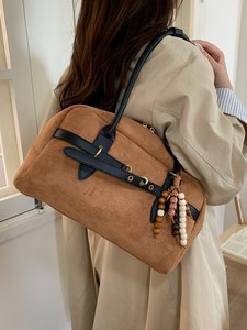 韩国麂皮绒腋下枕头包2025秋冬新款百搭手提波士顿包高级感单肩包