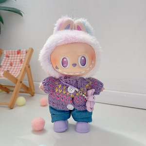 labubu娃衣拉布布衣服马卡龙紫色粉色毛衣针织衫多样搭配
