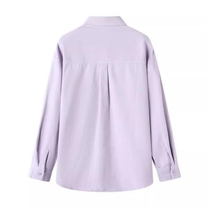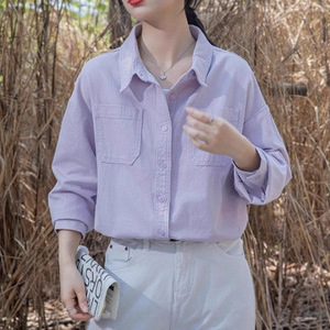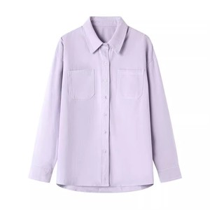 2025秋季新款休闲感浅紫色牛仔长袖衬衫女韩系设计感外搭叠穿上衣