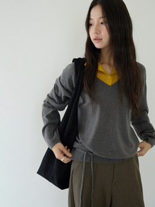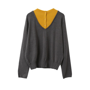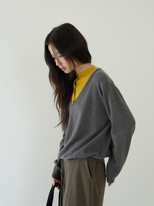 【欧凡】设计感V领假两件针织衫女2025秋季新款显瘦长袖上衣3163