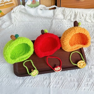 13cm自嘲熊娃衣可爱毛绒苹果橙子钩织帽套装棉花娃娃装饰衣服配件