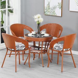 咖啡色 、一桌四椅 黑玻璃圆桌坐垫抱枕