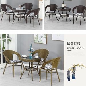 阳台小桌椅三件套藤编椅户外庭院茶几组合室外露台仿藤编靠背椅子