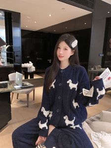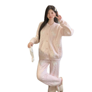 半边绒睡衣卡通小熊可爱睡衣宽松外穿开衫软糯加厚慵懒风女家居服