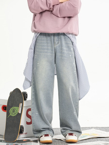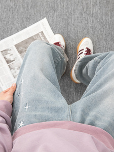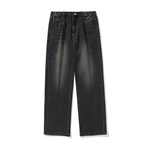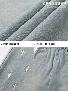 做旧水洗直筒牛仔裤2025春季新款日系宽松半松紧腰质感刺绣长裤q