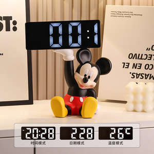卡通米奇时钟摆件客厅卧室桌面台式钟表摆设电子钟闹钟家居装饰品