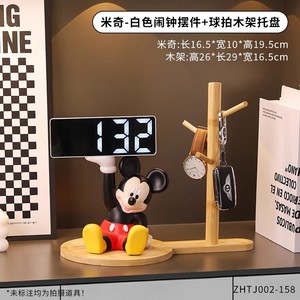 【一物两用 既是托盘 也是时钟】米奇摆件白色闹钟+球拍置物架