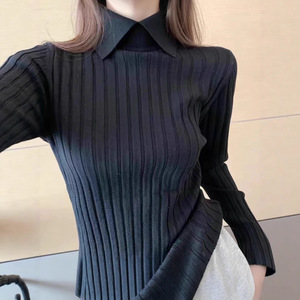 早秋新款慵懒风小翻领针织打底衫女早秋毛衣女设计感小众别致上衣