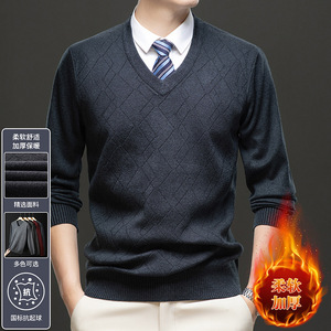 V领加厚羊毛衫秋冬季新款男士长袖针织鸡心领毛衣休闲百搭打底衫