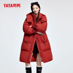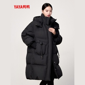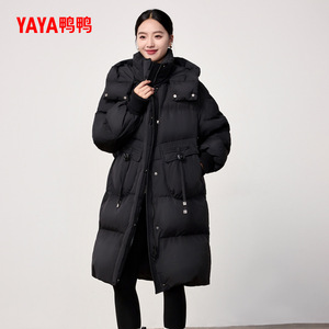 鸭鸭90鸭绒羽绒服女2025冬季新款长款加厚可拆帽保暖宽松外套J