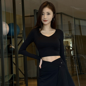 瑜伽服女秋季新款美背圆领长袖显瘦百搭短款健身服T恤运动上衣