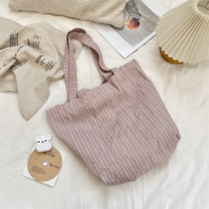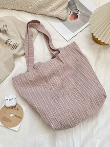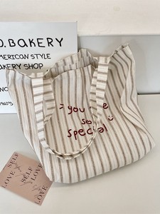 58246 2025新款韩国笑脸字母刺绣条纹单肩帆布包大容量逛街购物袋