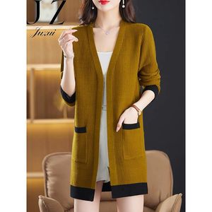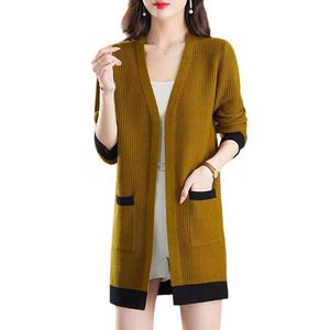 大码女装春秋新款针织开衫女中长款季时尚披肩口袋毛衣外穿外套