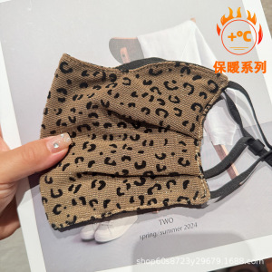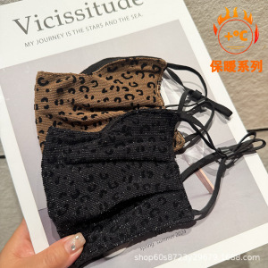 冬季加绒保暖口罩豹纹时尚大版护眼角防风防寒面罩弹力面纱高颜值