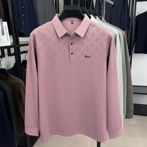 跨境翻领长袖t恤男2025春秋季新款中年商务通勤休闲男士polo衫