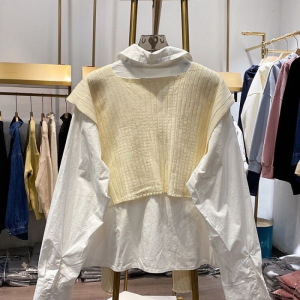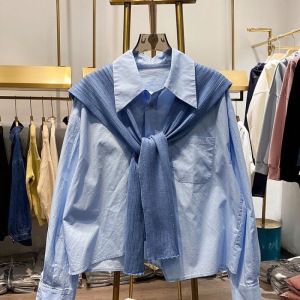 披肩长袖衬衫女两件套2025春秋季新款宽松棉衬衣假两件上衣短款