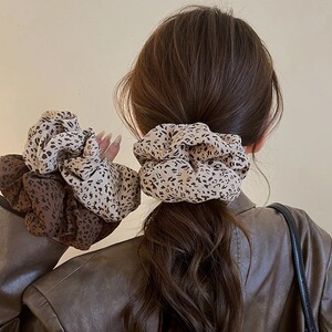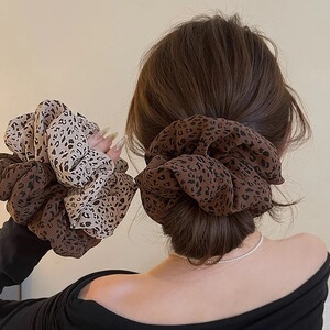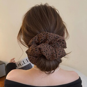 欧美个性百搭辣妹豹纹大肠发圈高级感马尾辫发绳橡皮筋丸子头发饰