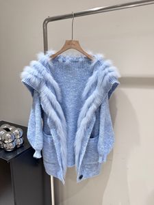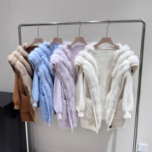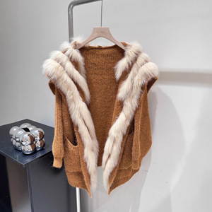 秋冬新款海军领狐狸毛皮草软糯宽松针织毛衣开衫慵懒风外套洋气女