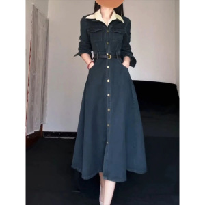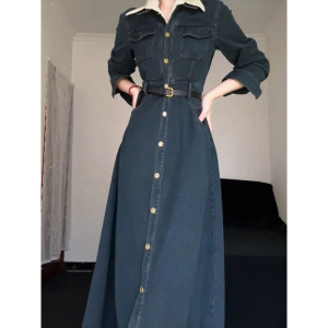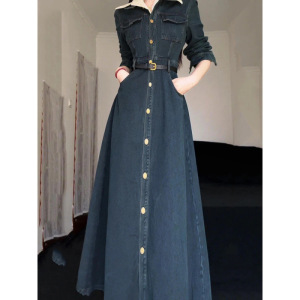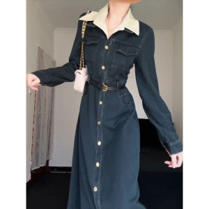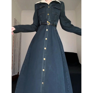 春秋法式复古时尚牛仔连衣裙女2025新款高级感气质显瘦高个子长裙