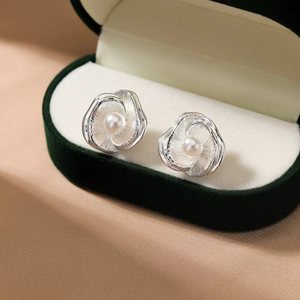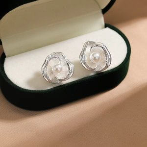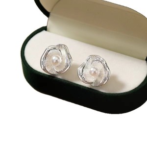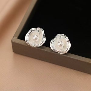 新款山茶花珍珠耳钉女小香风设计感耳环优雅时尚气质百搭耳饰批发