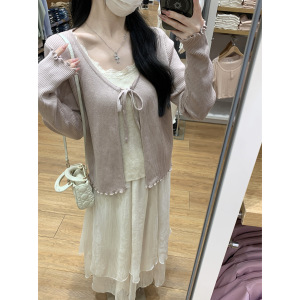 美式2025秋季韩版假两件木耳边设计感6羊毛长袖针织衫打底女上衣