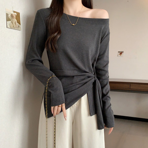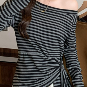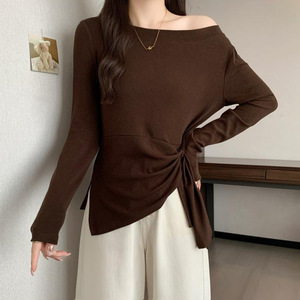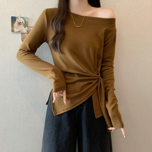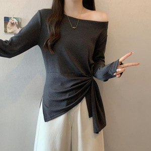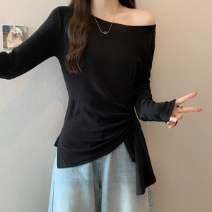 2025年秋季新款洋气秋季设计感斜领打底T恤百搭长袖