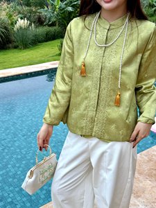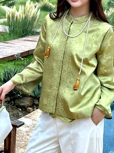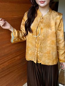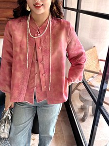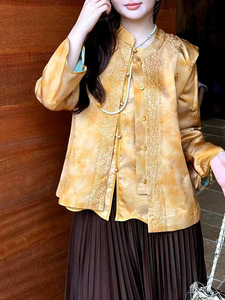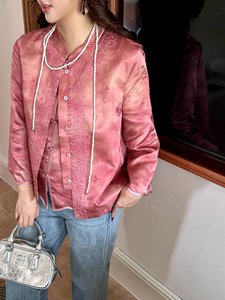 南油批发2025年秋季新款桑蚕丝柿染提花精致刺绣手工钉珠上衣衬衫