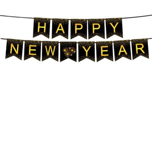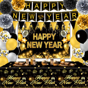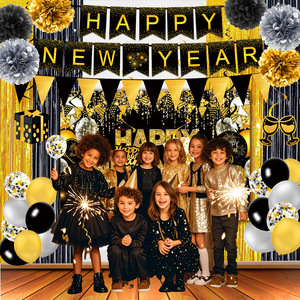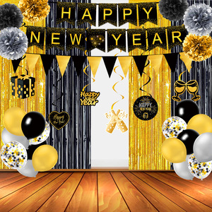 黑金新年主题男孩生日横幅吊旋纸花蜂窝球气球雨丝帘派对装饰用品