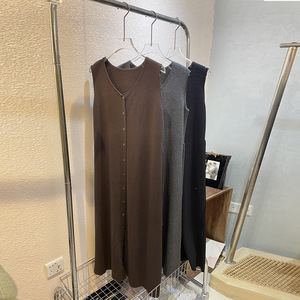 女装气质高级感秋冬针织连衣裙背心裙V领无袖2025新款宽松a字长裙