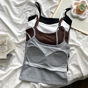 外贸一体式带胸垫裹胸背心韩版爆款吊带美背纯色外穿打底短款上衣