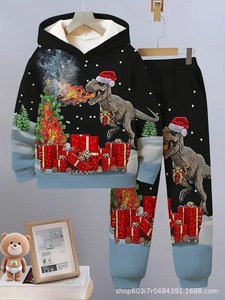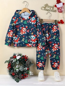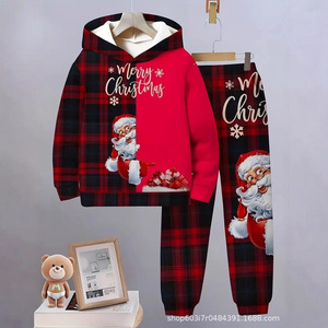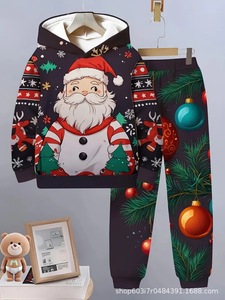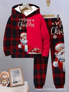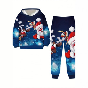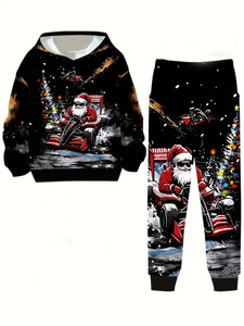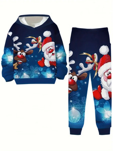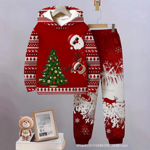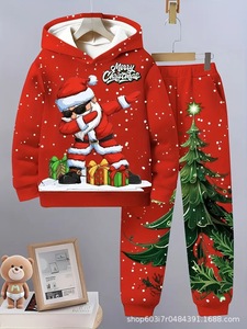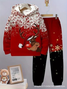 2025圣诞节跨境外贸爆款时尚数码印花圆领宽松喜庆氛围连帽衫套装