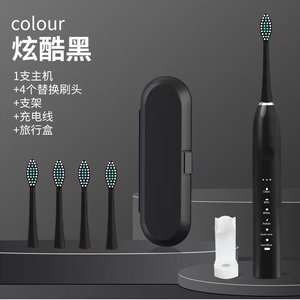 黑色【送4只刷头】+收纳盒+壁挂架+充电线 全身防水.