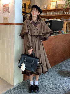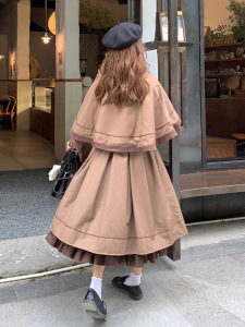 法式复古设计感少女洛丽塔风连衣裙套装气质收腰显瘦斗篷两件套