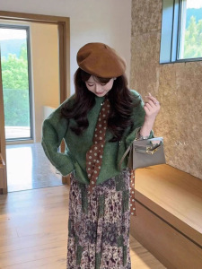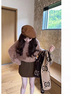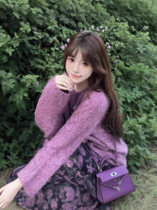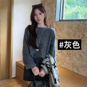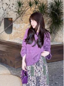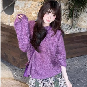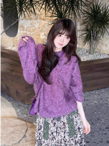 秋季新款乌梅子酱韩系慵懒风显瘦毛衣女花纱拉毛宽松软糯针织上衣