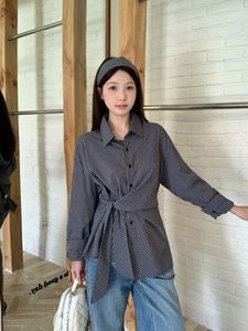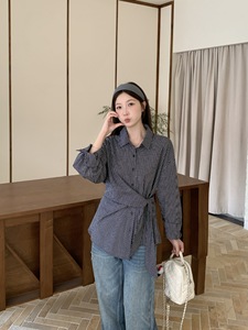 2025年大码女装秋季新款法式设计感绑带收腰不规则衬衫小众上衣