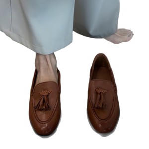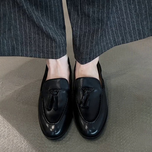 羊皮版~复古平底流苏一脚蹬乐福鞋女英伦风小皮鞋软底浅口单鞋